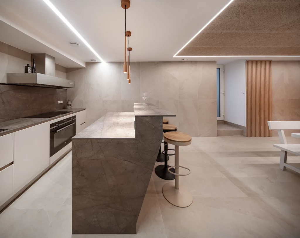 En ZORZANO sabemos que una obra “menor” también puede ser un gran proyecto. Este merendero de 30 m², ubicado en la planta sótano de una vivienda, ha sido acondicionado en 2024 para convertirse en un espacio acogedor, eficiente y con diseño cuidado.